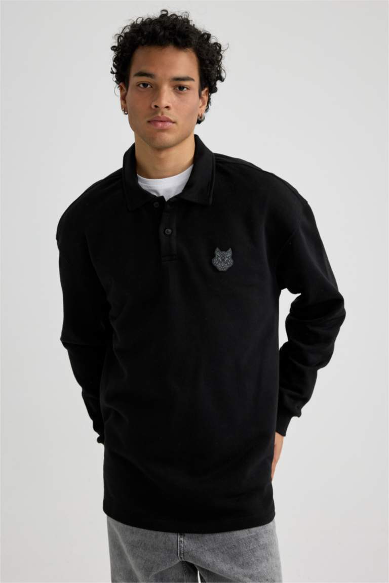 Boxy Fit Polo Neck Back Printed Printed Sweatshirt