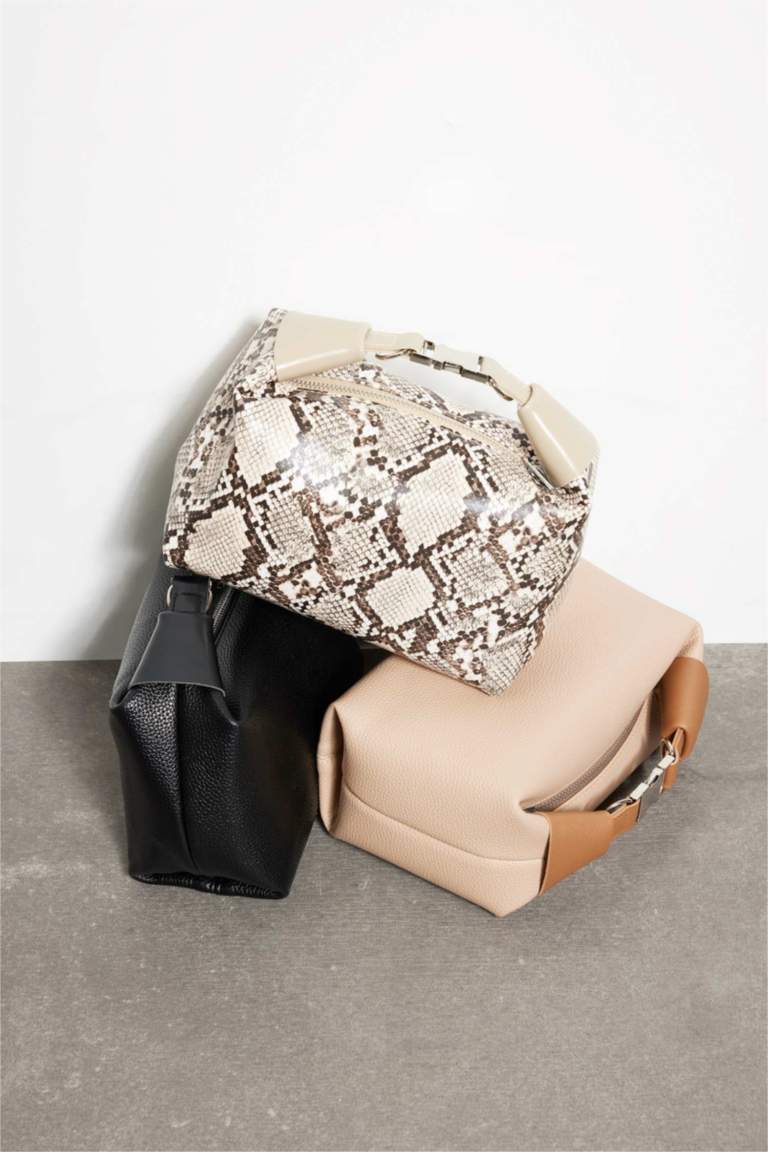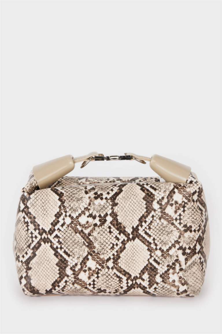 - Woman Buckle Detailed Snakeskin Look Faux Leather Handbag
